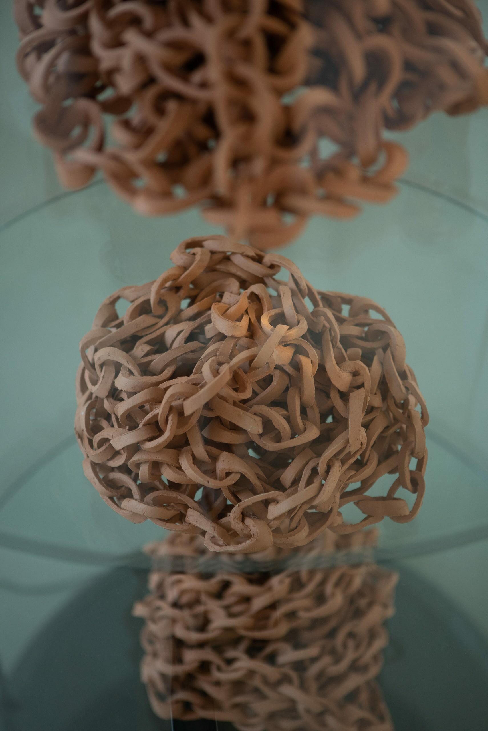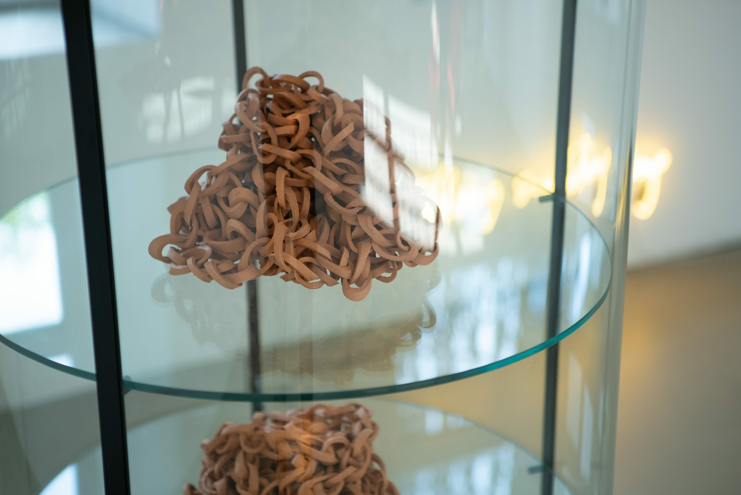 glass works displayed on the gallery floor, a new series of Trimakas’s works