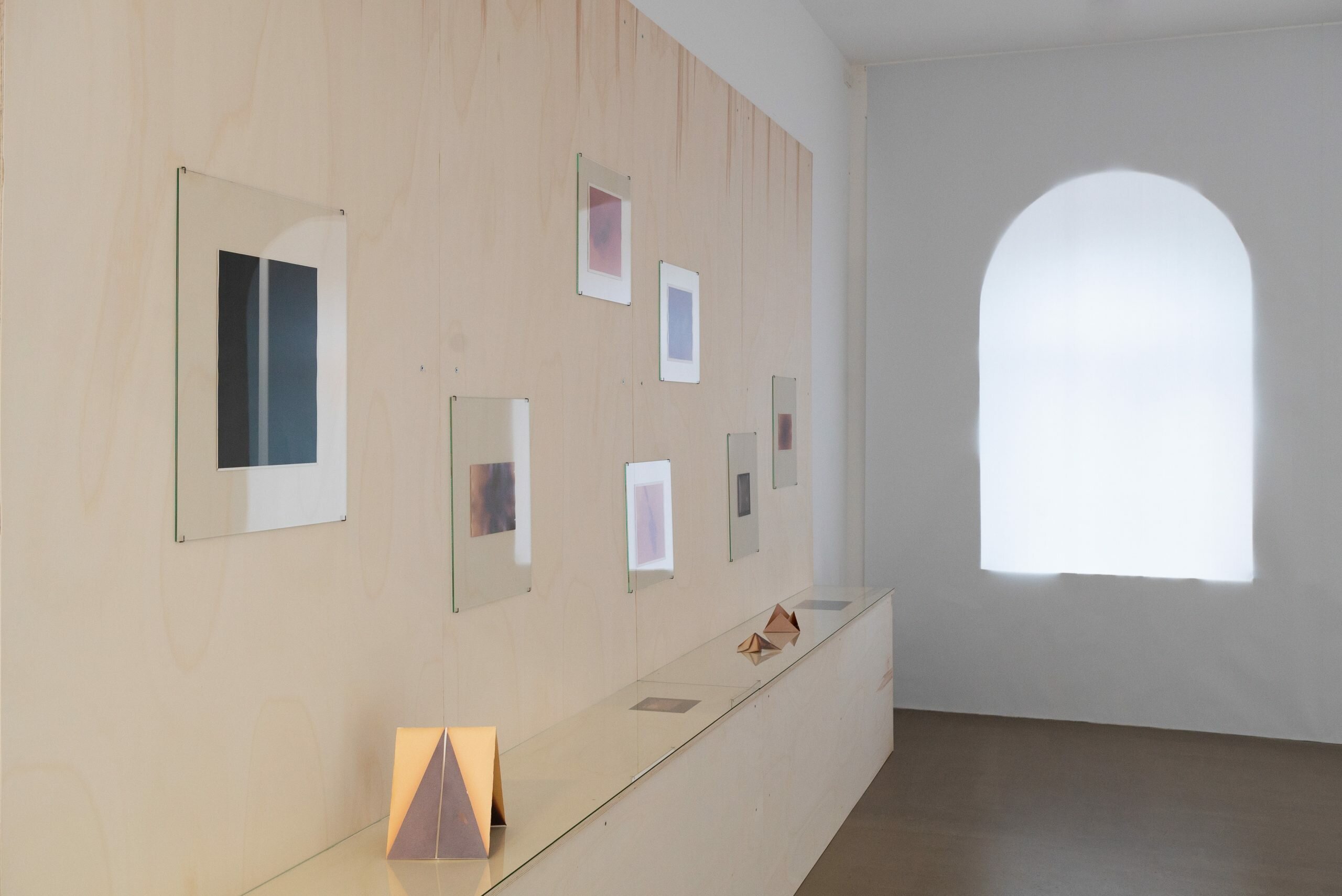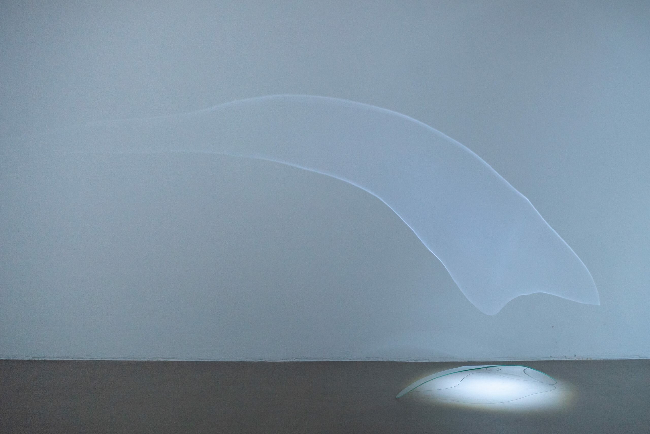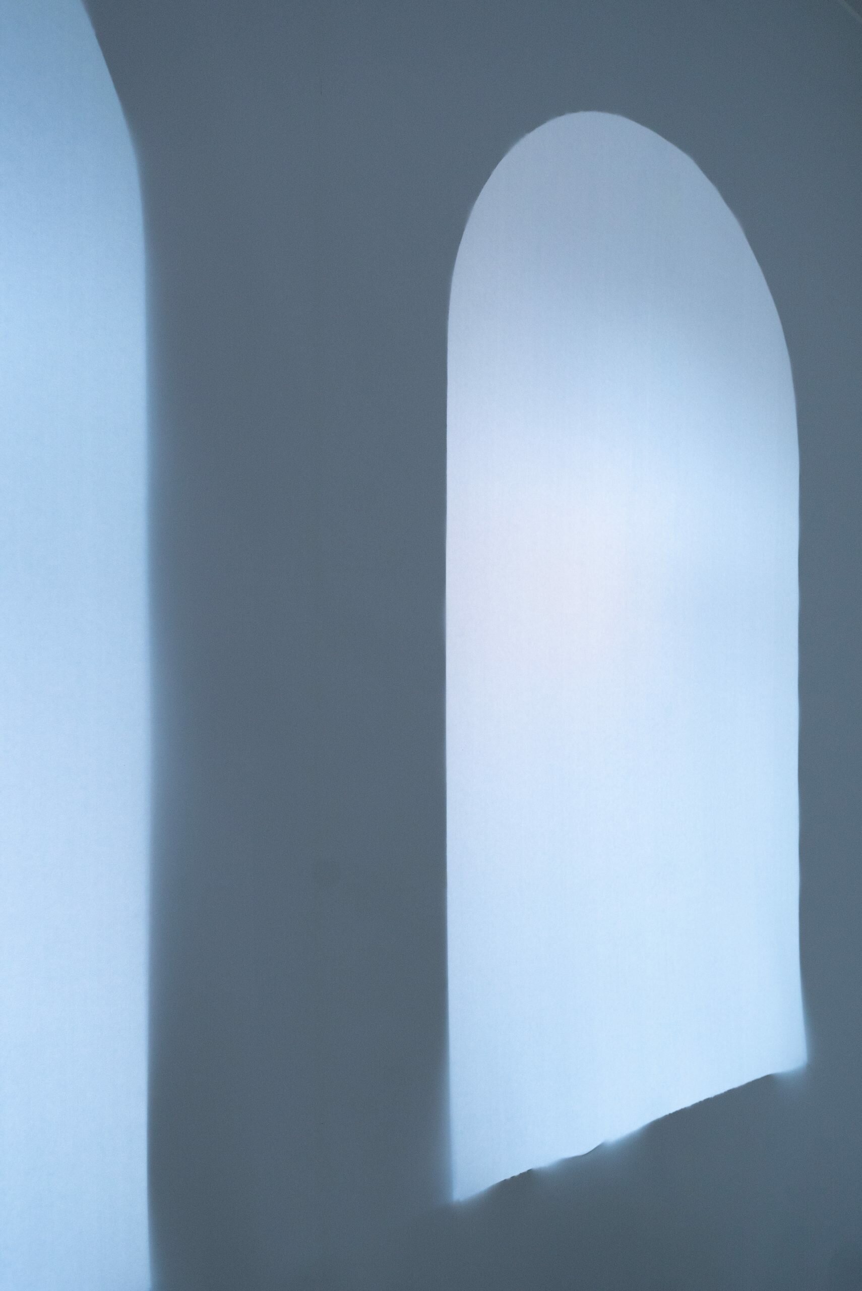 windows of the exhibition space refracts daylight, responding to the artist’s
