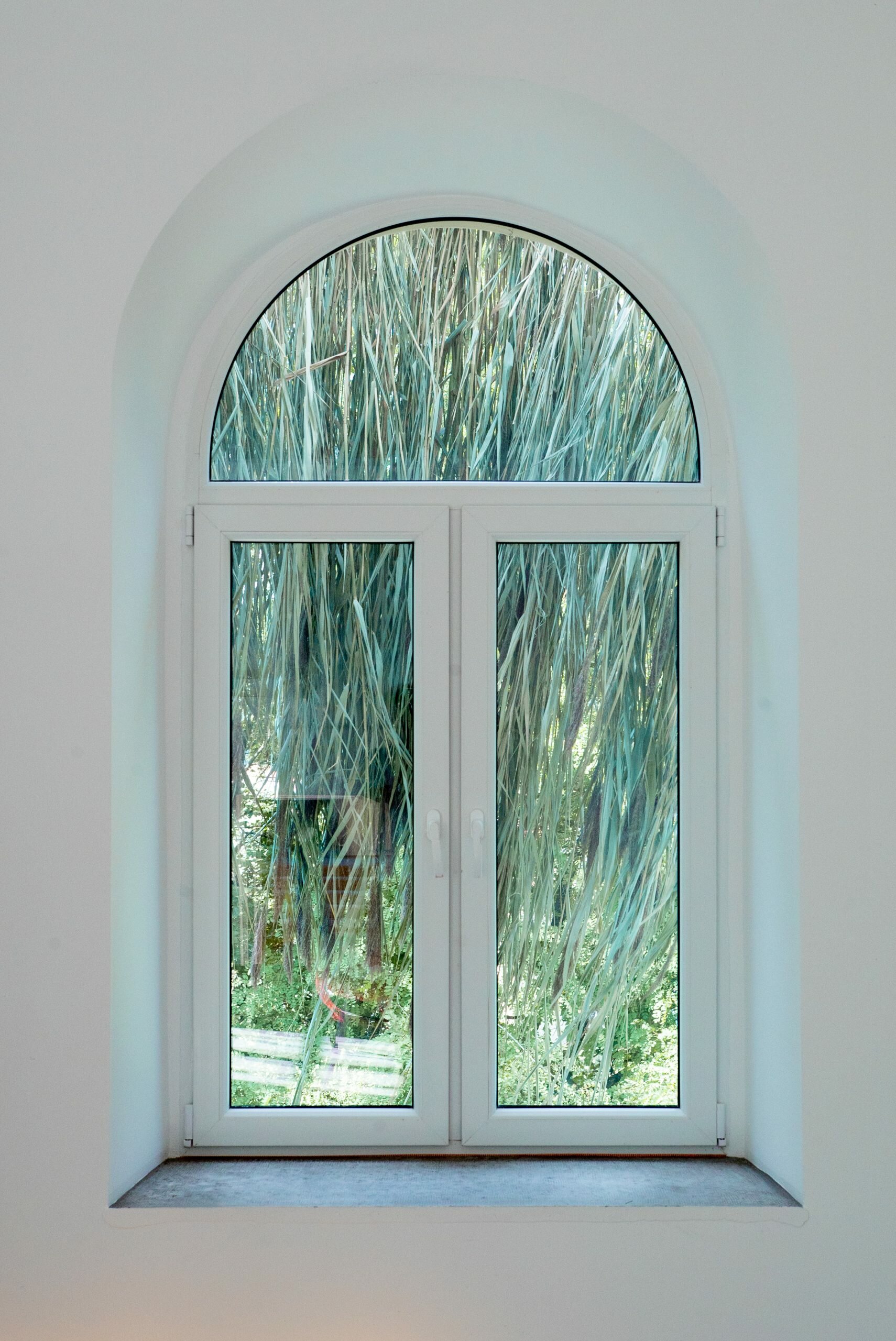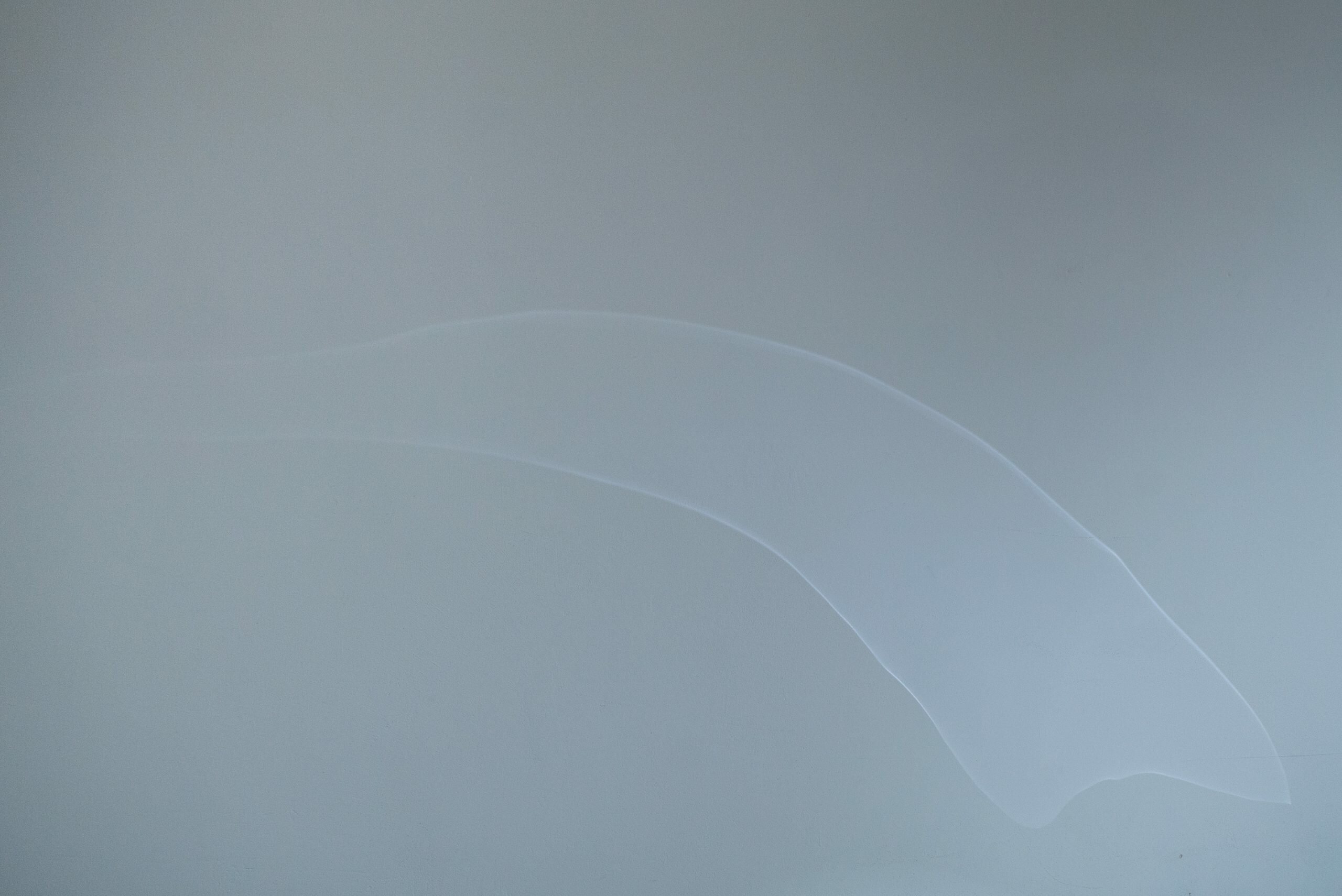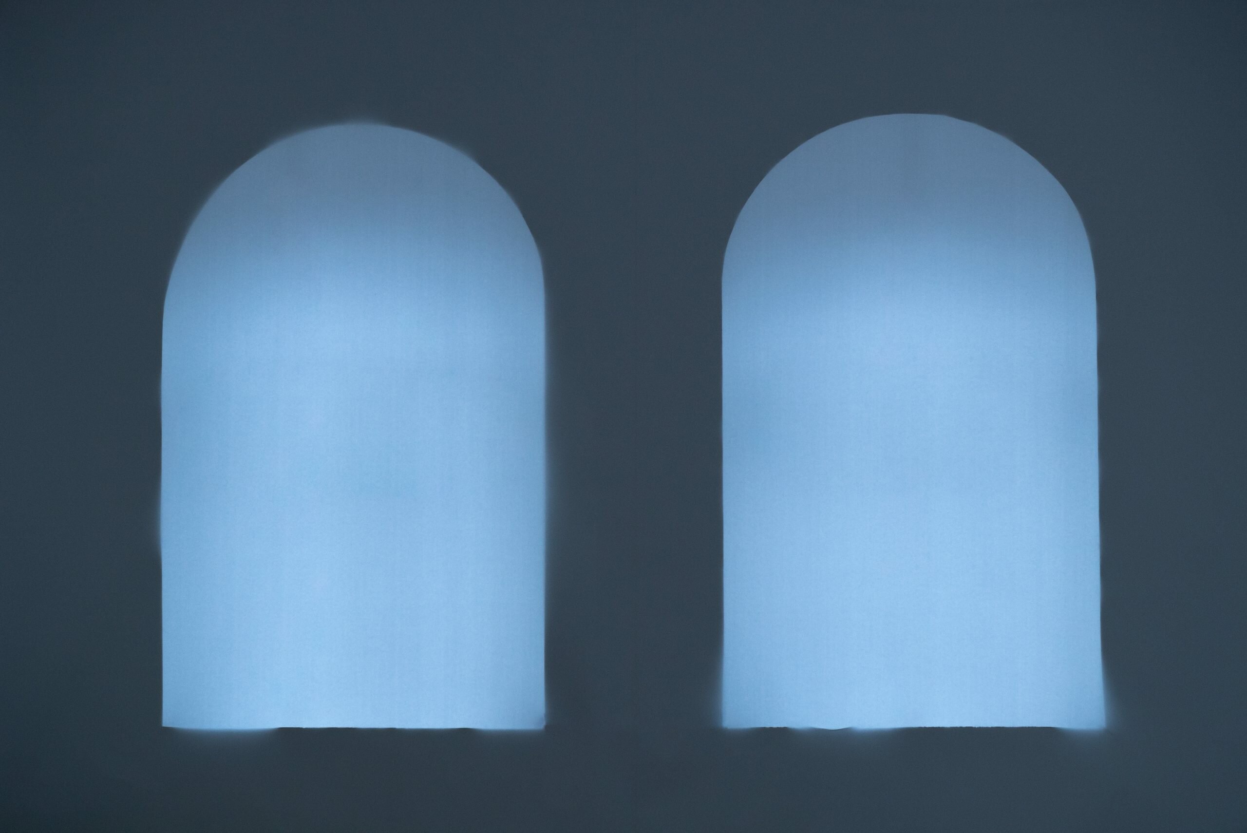 windows of the exhibition space refracts daylight, responding to the artist’s