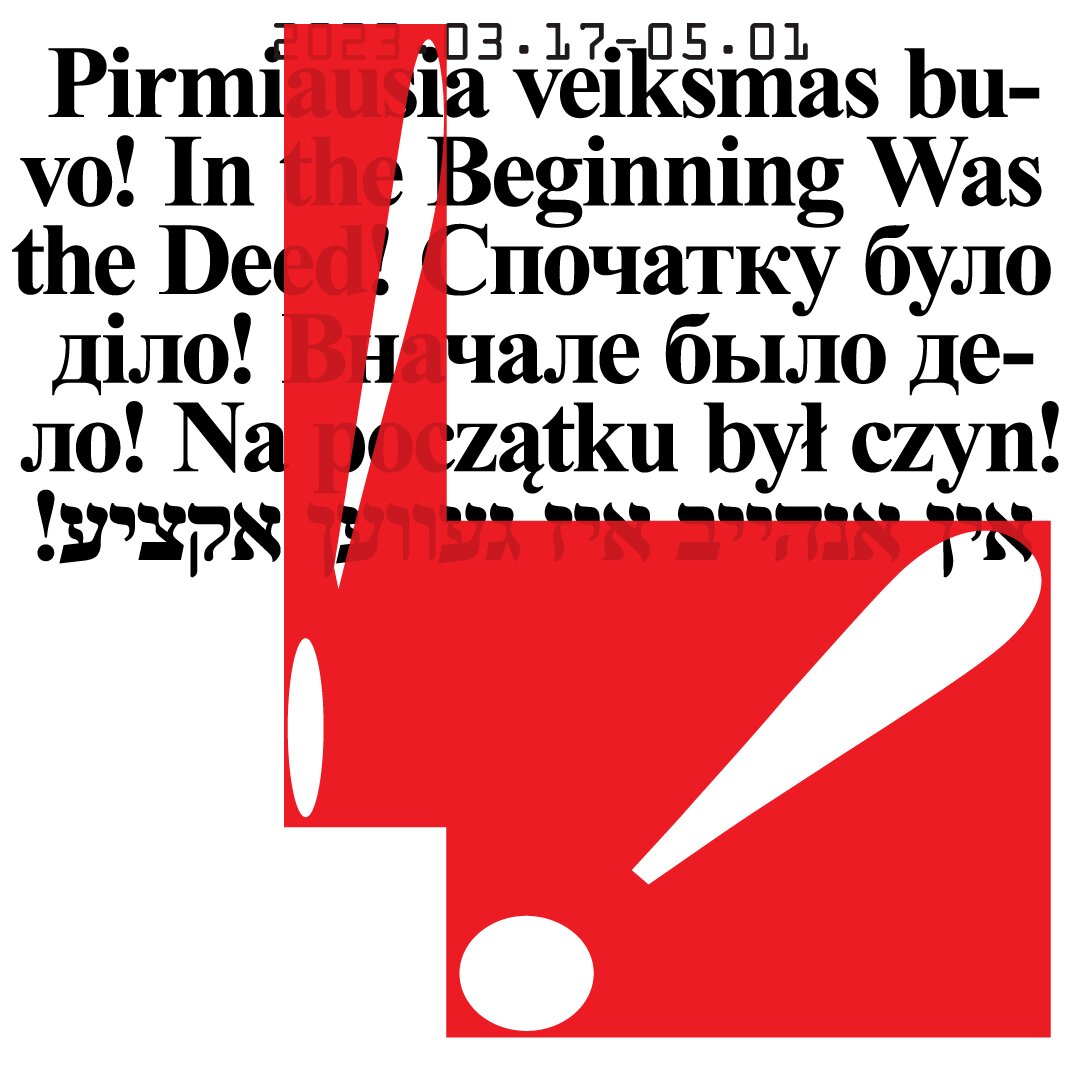 IN THE BEGINNING WAS THE DEED! Anastasia Sosunova, Agnė Jokšė, Anton Karyuk, Naglis Kristijonas Zakaras, Goda Palekaitė ir Adomas Palekas, Iza Tarasewicz, Liliana Zeic, the unknown author of Grodno archive. 2023 03 17 – 05 01